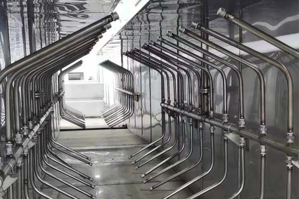 噴淋式聯合清洗機典型工序是:脫脂、水洗、表調、磷化、鈍化、水洗、純水洗。